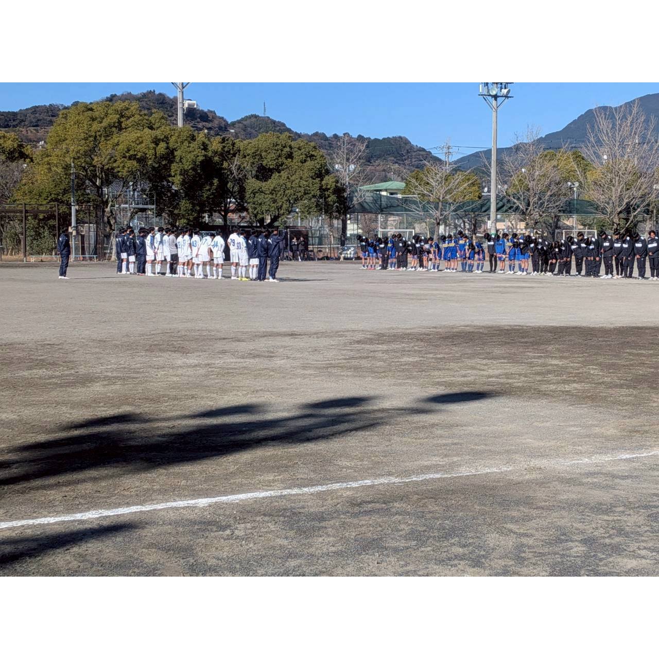 アップの時間帯は朝方の冷え込みが残っていましたが、試合開始頃には寒さも和らぎ、穏やかな快晴の中での試合となりました。
